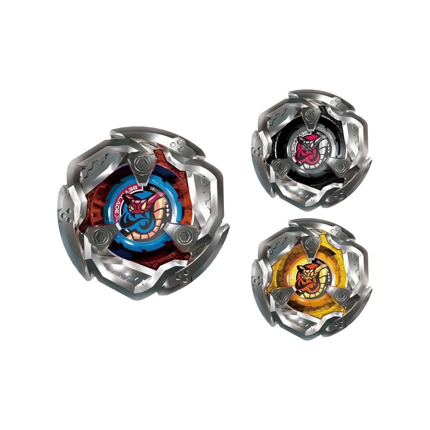 Zufalls-Booster : Einer von drei speziell gefärbten, vorab angepassten Beyblades ( Viper Tail 5-80O , 4-60F , 3-80HN ) mit dem Split-Gimmick der Viper Tail- Klinge.