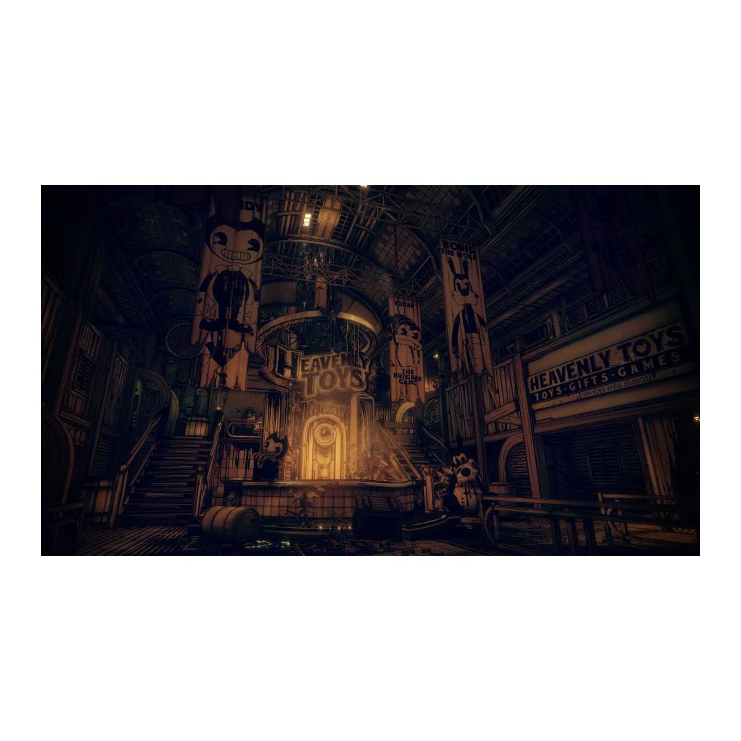 „Bendy and the Dark Revival“ für Nintendo Switch ist ein Horror-Abenteuer aus der Ego-Perspektive, das in einem verzerrten Zeichentrickstudio voller Geheimnisse und Gefahren spielt. Die Spieler schlüpfen in die Rolle von Audrey, die sich durch dunkle Korridore bewegt, Rätsel löst und furchterregenden Tintenkreaturen ausweicht, die in den Schatten lauern.