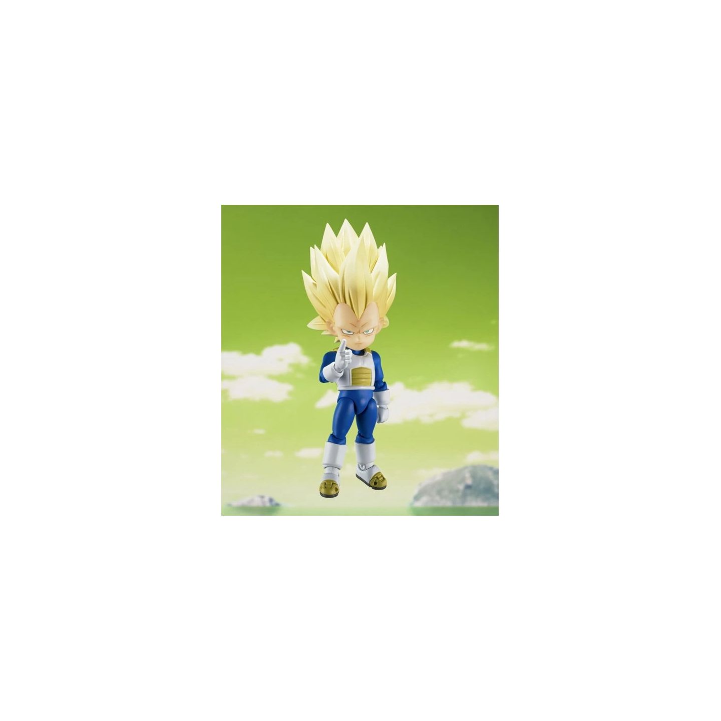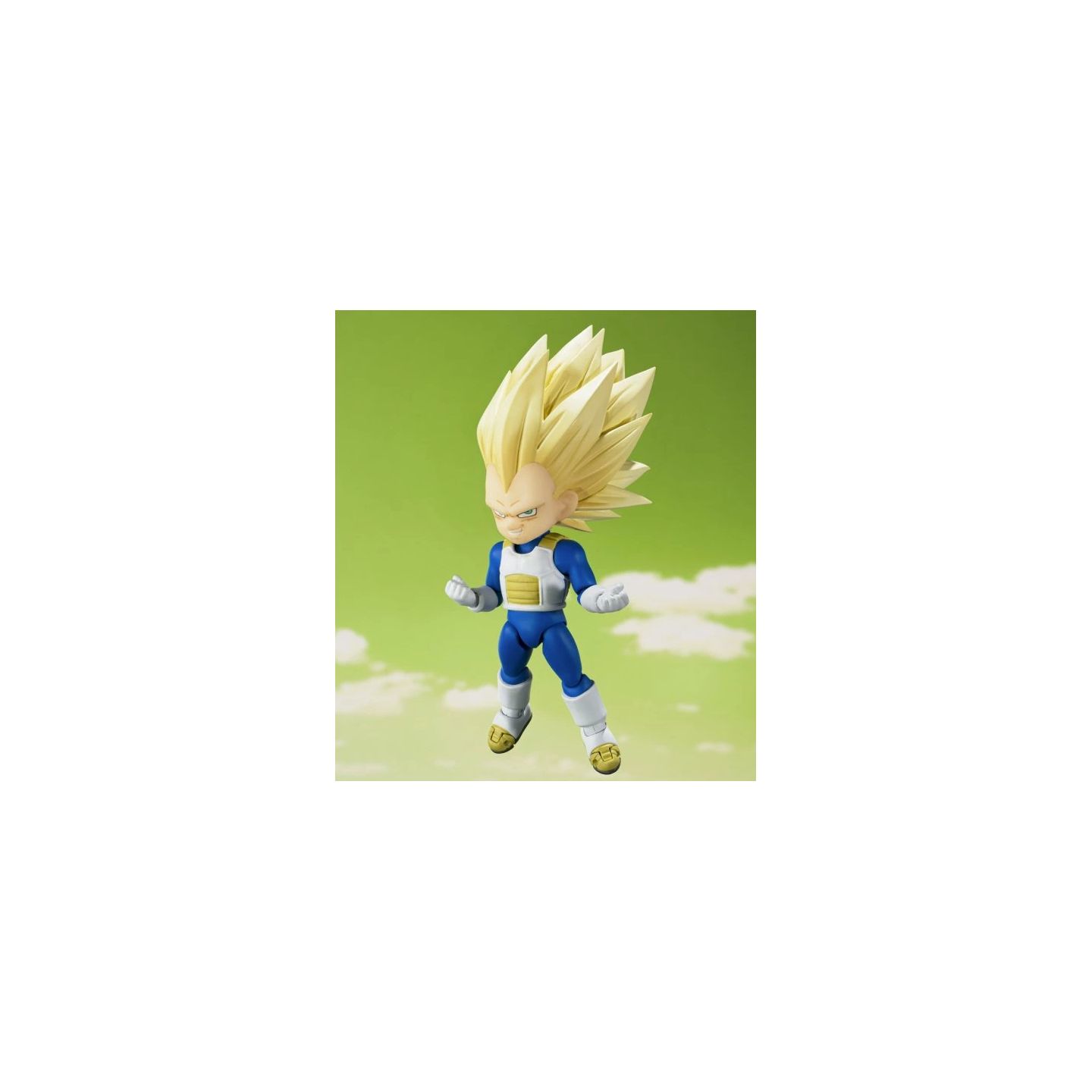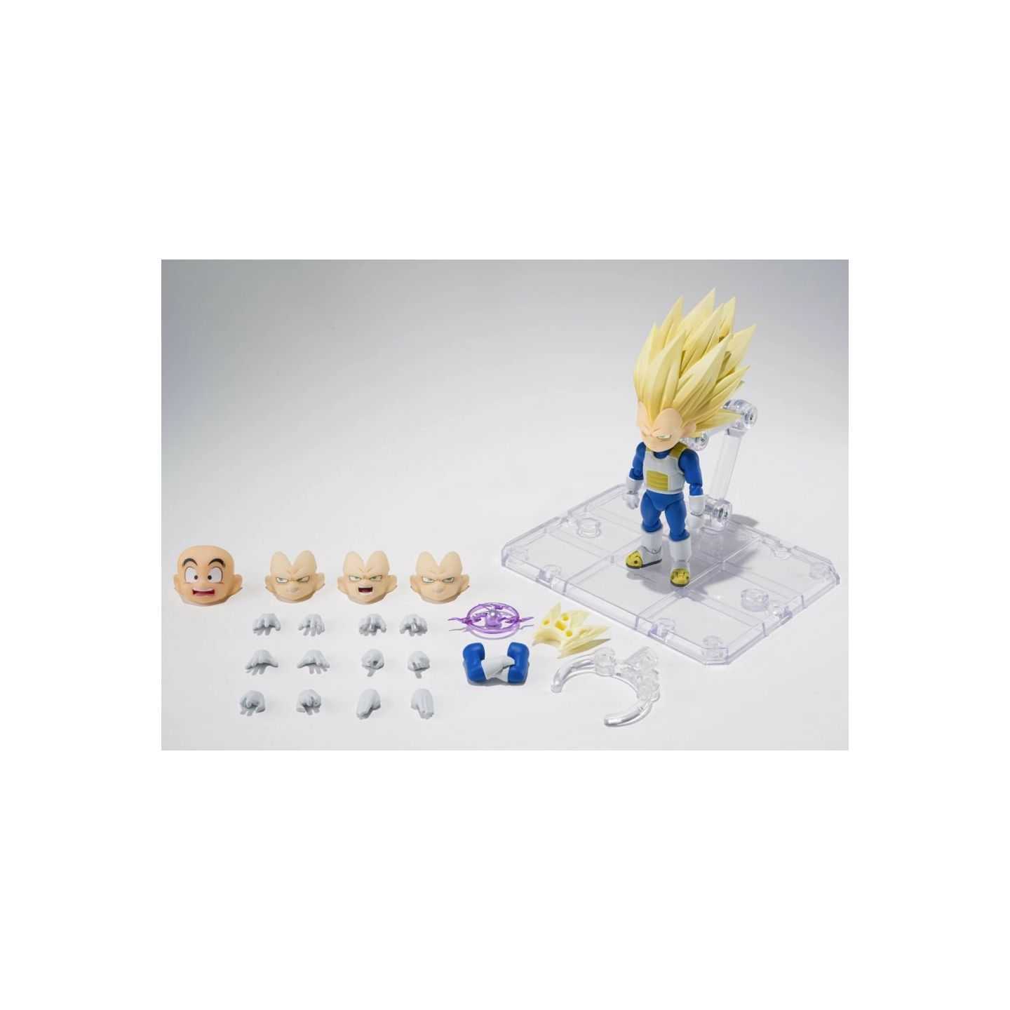 Eleva tu colección con la vibrante y altamente articulada versión mini de Vegeta en su forma Super Saiyan 3, de la nueva serie Dragon Ball DAIMA. Esta versión a escala "Mini" conserva la estructura móvil completa de S.H.Figuarts, lo que permite poses dinámicas, ataques de energía y versatilidad de visualización, todo ello en un tamaño compacto de ~90 mm.
