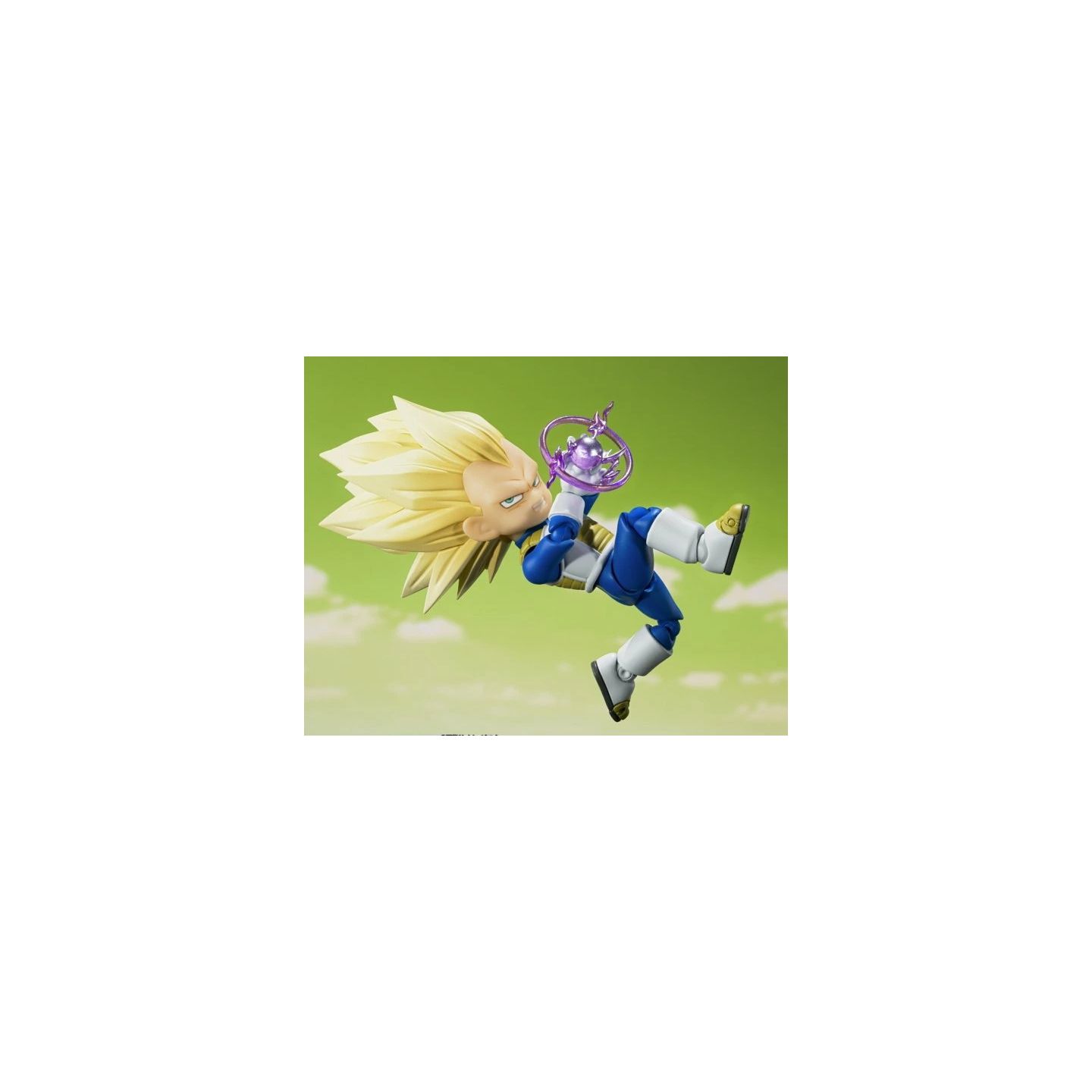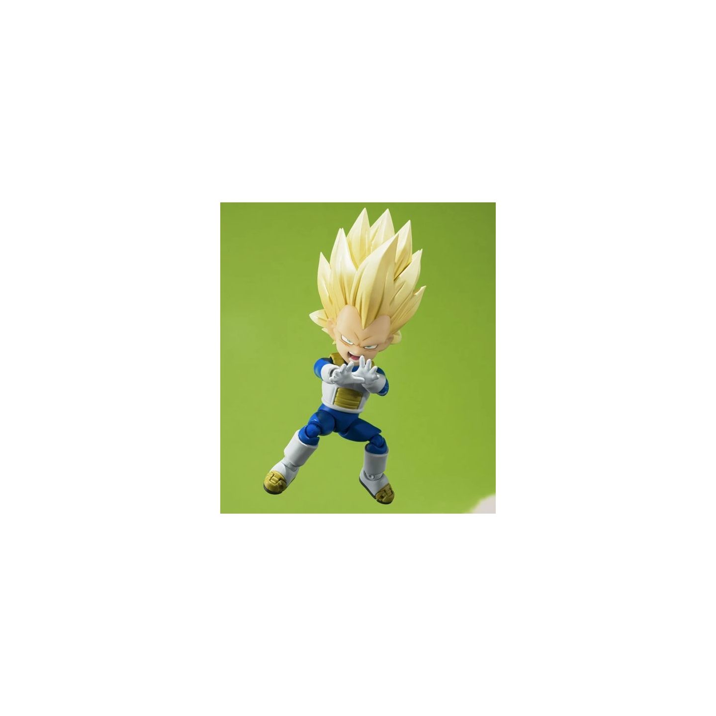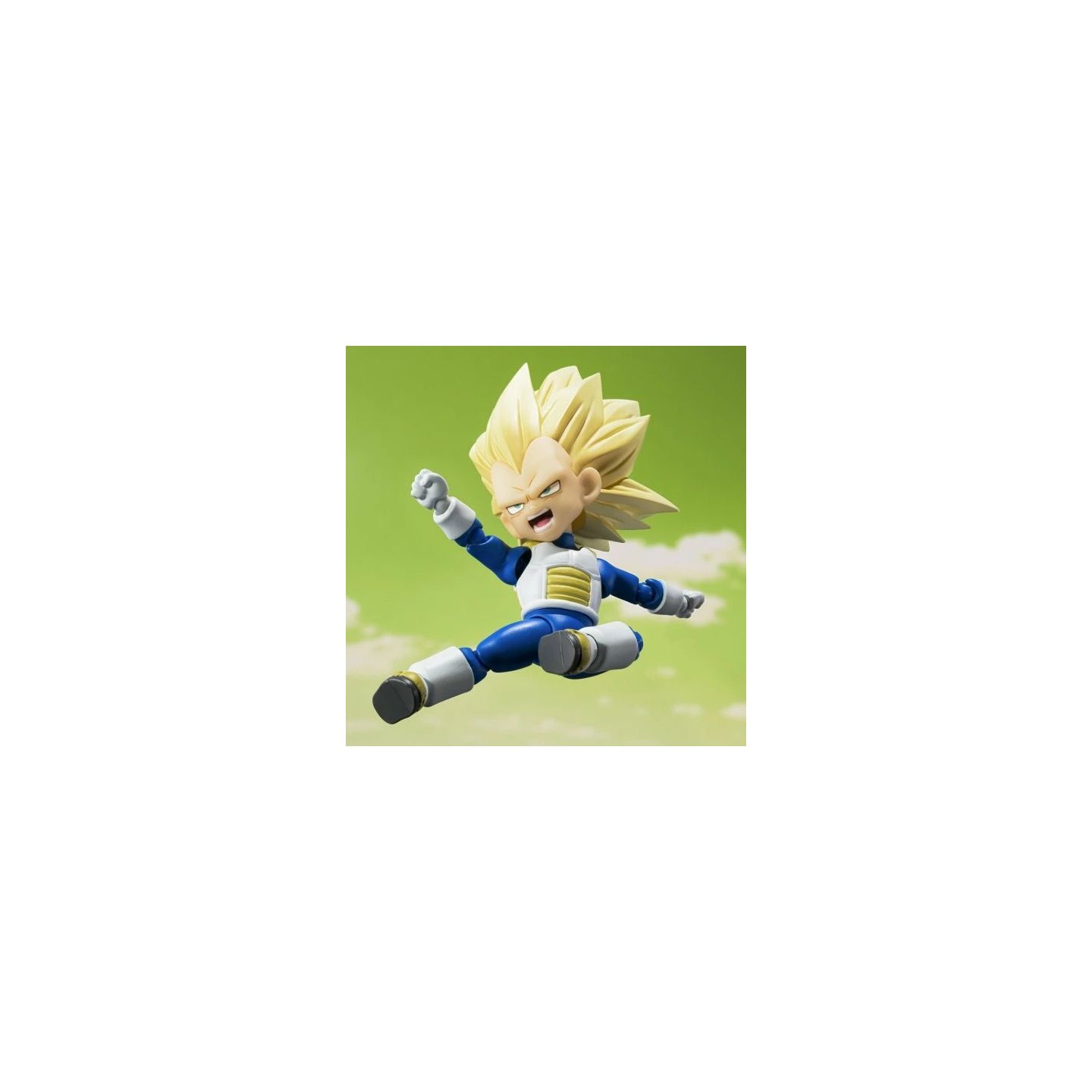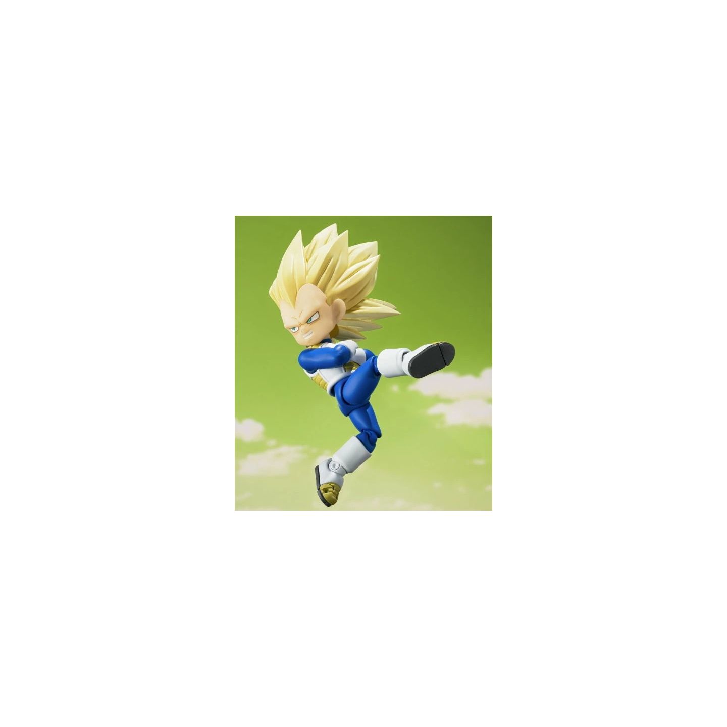 Eleva tu colección con la vibrante y altamente articulada versión mini de Vegeta en su forma Super Saiyan 3, de la nueva serie Dragon Ball DAIMA. Esta versión a escala "Mini" conserva la estructura móvil completa de S.H.Figuarts, lo que permite poses dinámicas, ataques de energía y versatilidad de visualización, todo ello en un tamaño compacto de ~90 mm.
