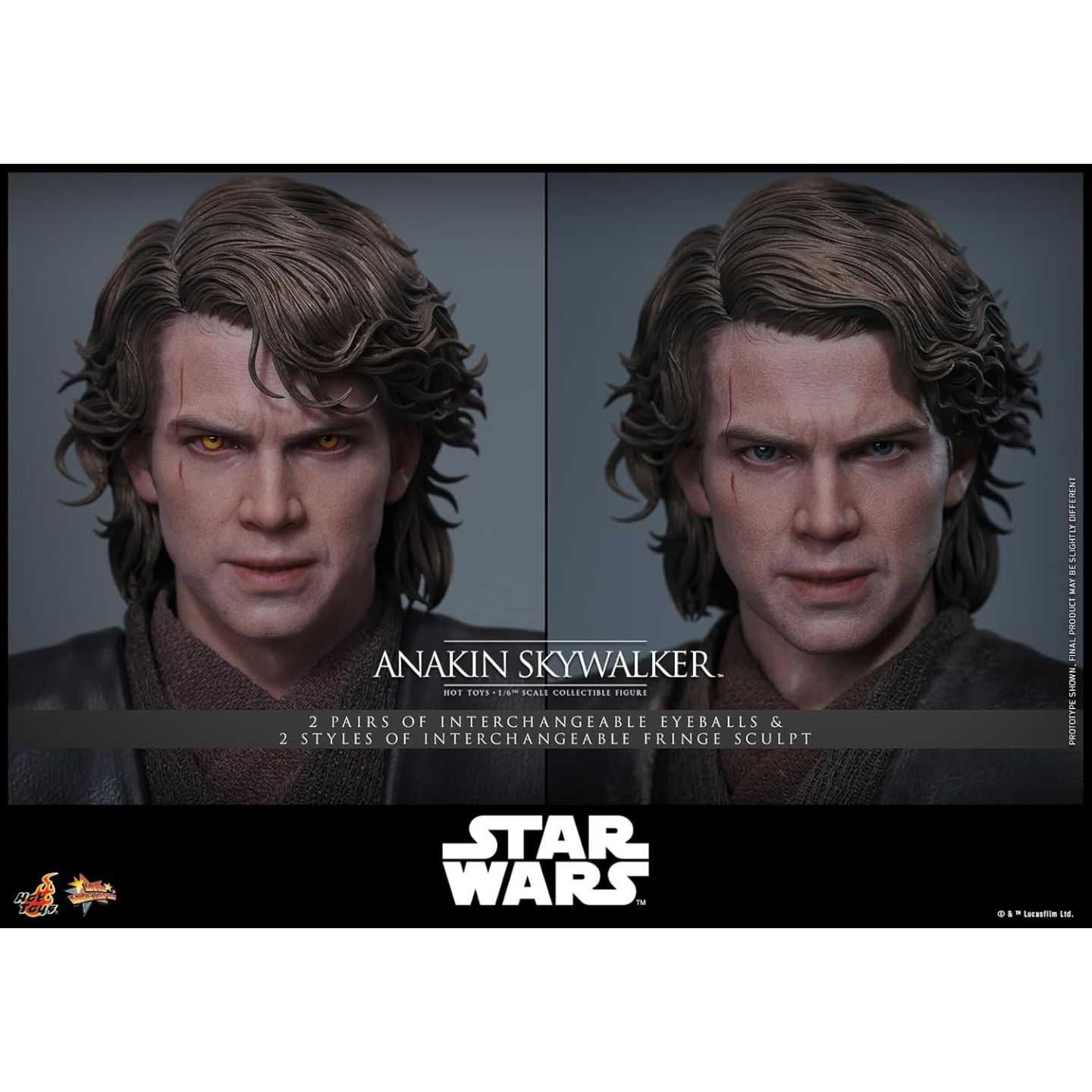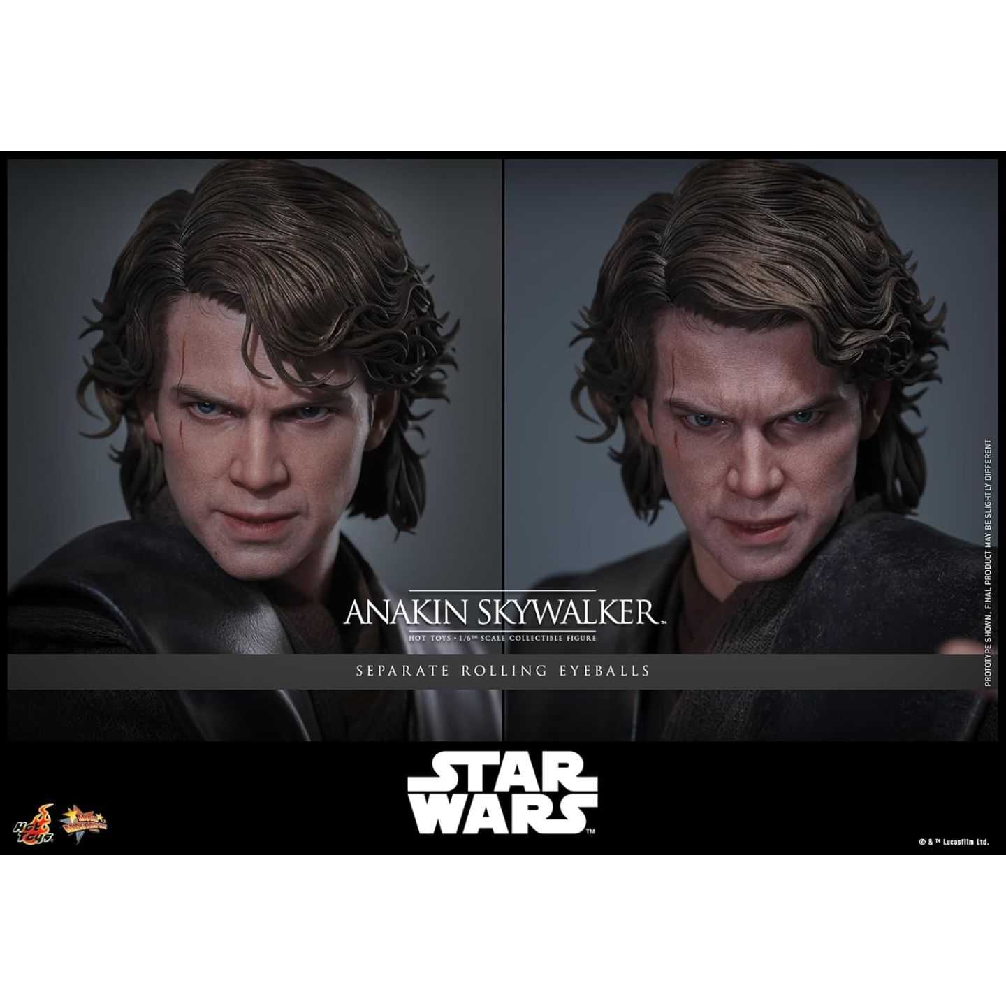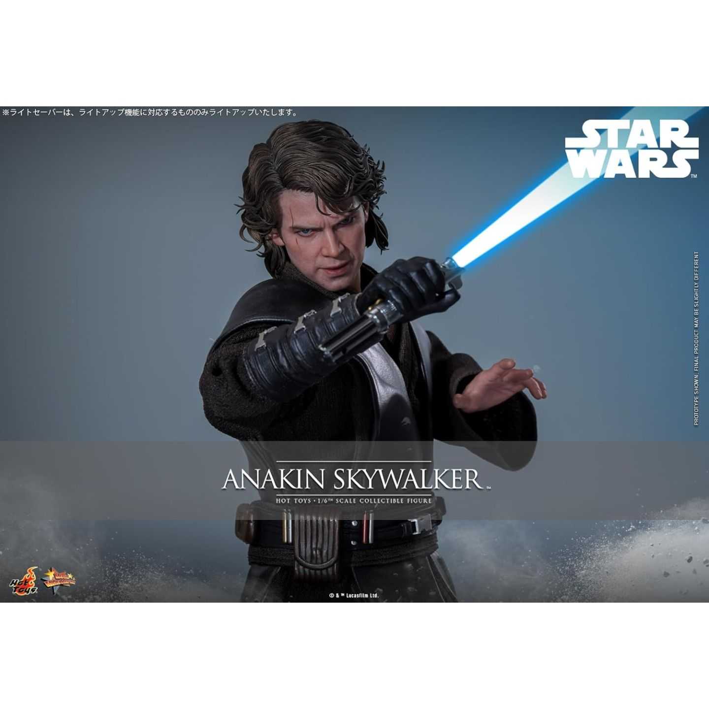 À l'échelle 1/6, la figurine comprend les robes Jedi emblématiques d'Anakin, son sabre laser bleu emblématique avec éclairage LED, un bras mécanique et plusieurs mains interchangeables pour des poses d'action ou d'exposition. La sculpture expressive du visage traduit à la fois la détermination et la noirceur de sa transformation en Dark Vador.