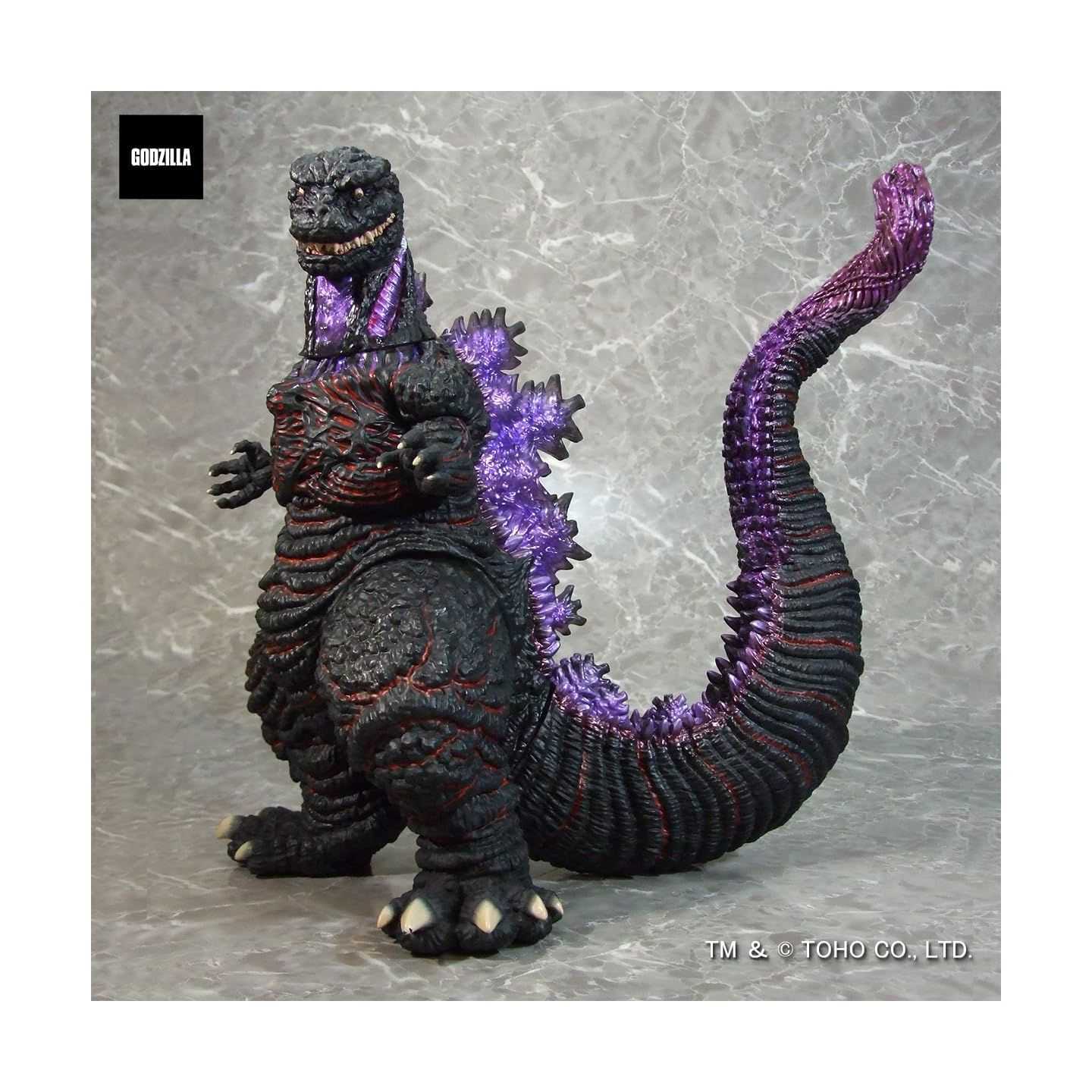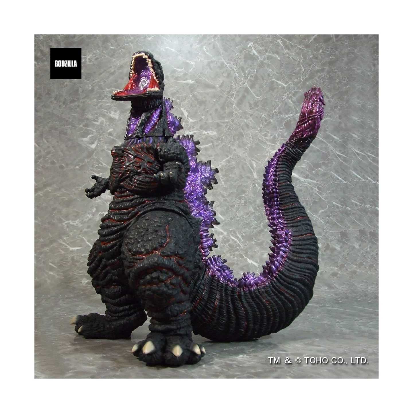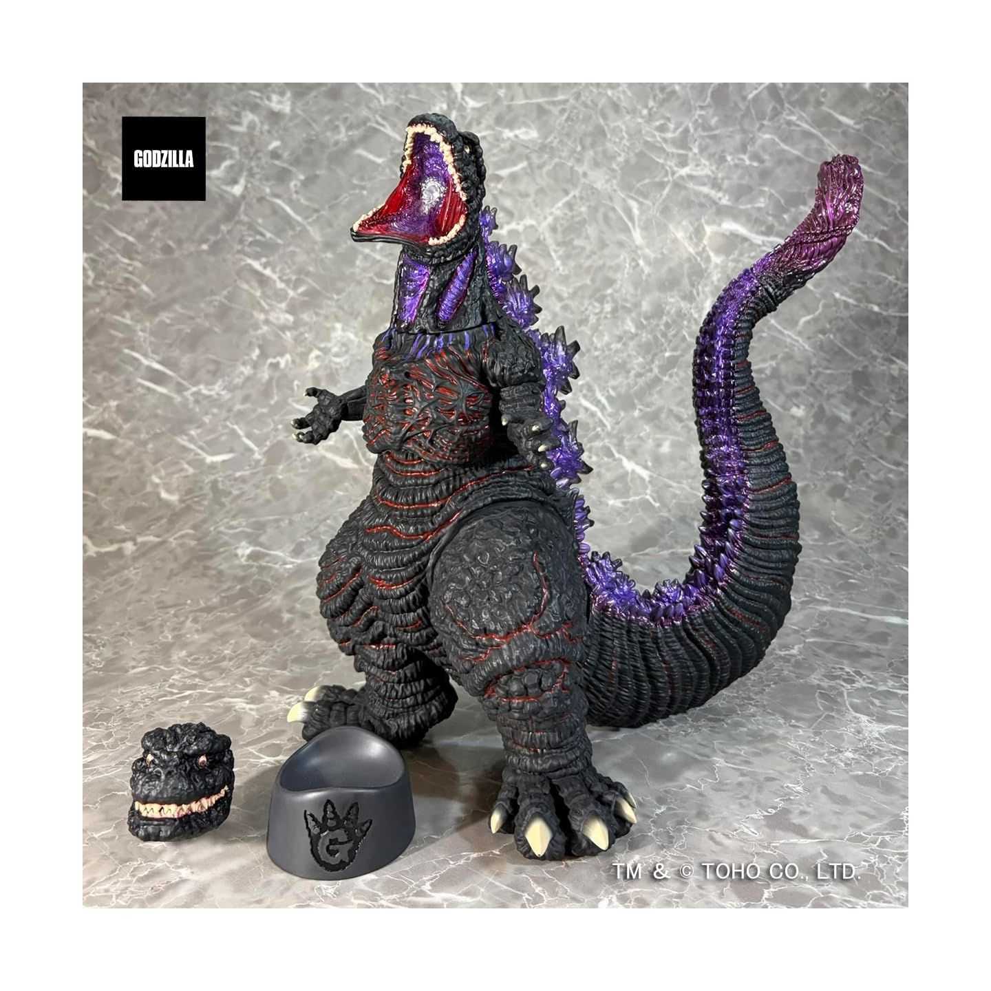 D'une hauteur d'environ 345 mm et d'une longueur d'environ 290 mm, la figurine présente une sculpture dynamique, une texture détaillée et une peinture spectaculaire qui met en valeur l'activation du rayon de chaleur intense. Sa pose et sa finition en font une pièce maîtresse pour toute collection de kaiju ou de tokusatsu.