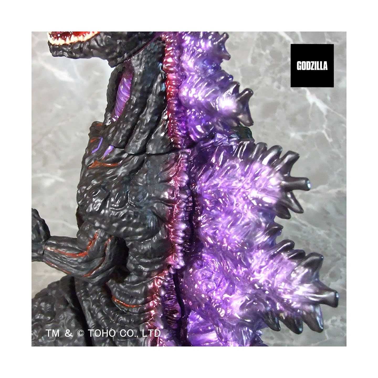 Inspirée par l'apparence emblématique de Godzilla lors de la scène du souffle atomique dévastateur, cette figurine en vinyle souple recrée puissamment la présence écrasante et l'énergie brute du Roi des Monstres .